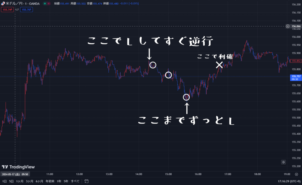逆行して、損切してはすぐポジションを同じ方向でもつといったように「いつか来る底(天井)」を当てるゲームにしてしまいました。